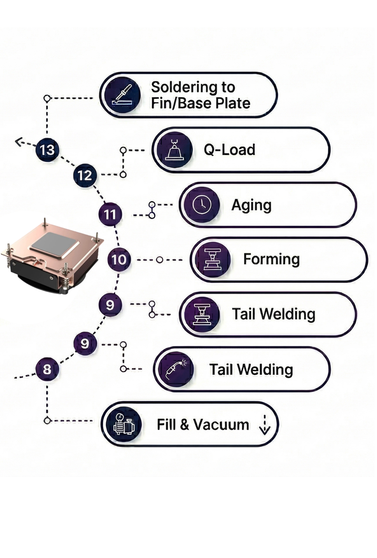 Mounted with through-holes in vapor chamber.